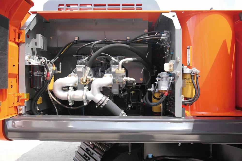 挖掘機(jī)的第二核心部件:液壓泵,還是采用高可靠性的分體式斜軸式柱塞泵。泵室布局著日常保養(yǎng)的濾芯,燃油主濾、燃油預(yù)濾、先導(dǎo)濾清器、機(jī)油濾清器和電動(dòng)燃油泵集中在這,方便維護(hù)保養(yǎng)。